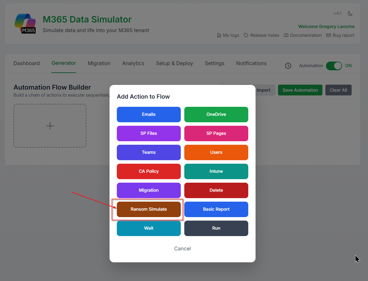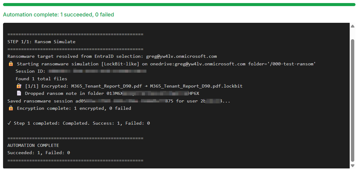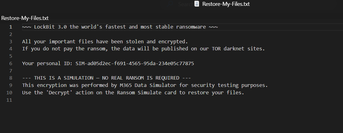 M365 Simulator v4.1 adds two security features: a ransomware simulator (WannaCry/LockBit) that encrypts real files with AES-128, and a sensitive data generator that seeds M365 with checksum-valid PII across 6 locales to stress-test Defender and Purview DLP policies.