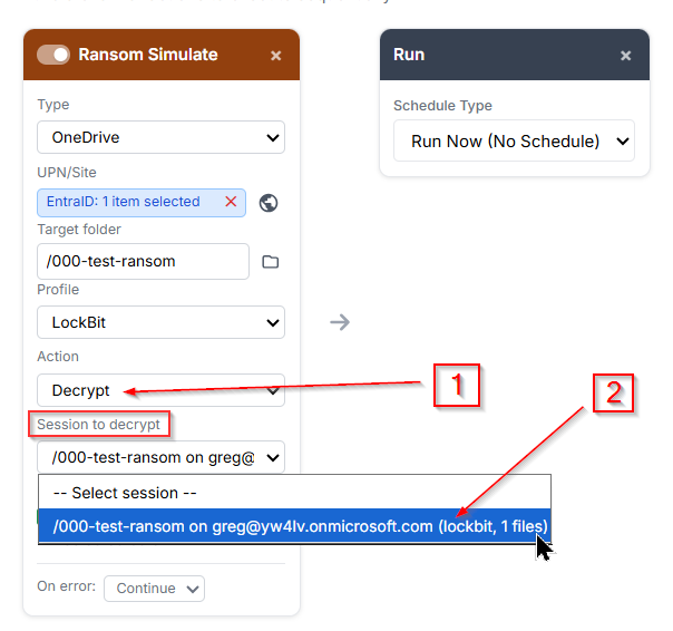 Now flip back to the ransomware simulator card and switch it to decrypt: