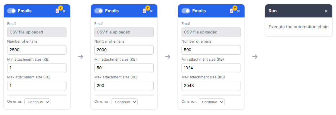 For example: “I want a mailbox with 5000 emails, where 50% have tiny attachments (1KB), 40% are medium (50KB–200KB), and 10% are chunky (1024KB–2048KB).”