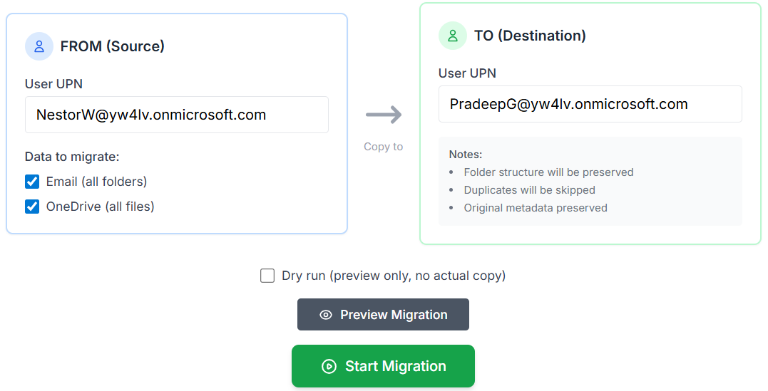 It could happen that you just need to clone one user's data to another, clean and simple. That’s where the Carbon Copy feature kicks in: Migration.