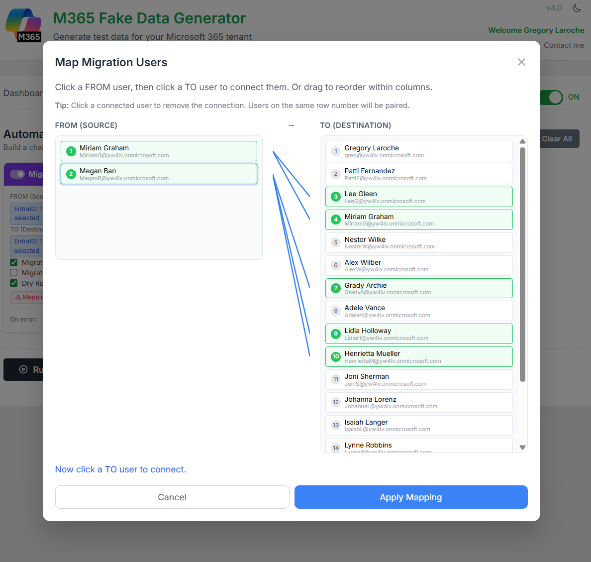 Click it to open the modal and define exactly who migrates to who: