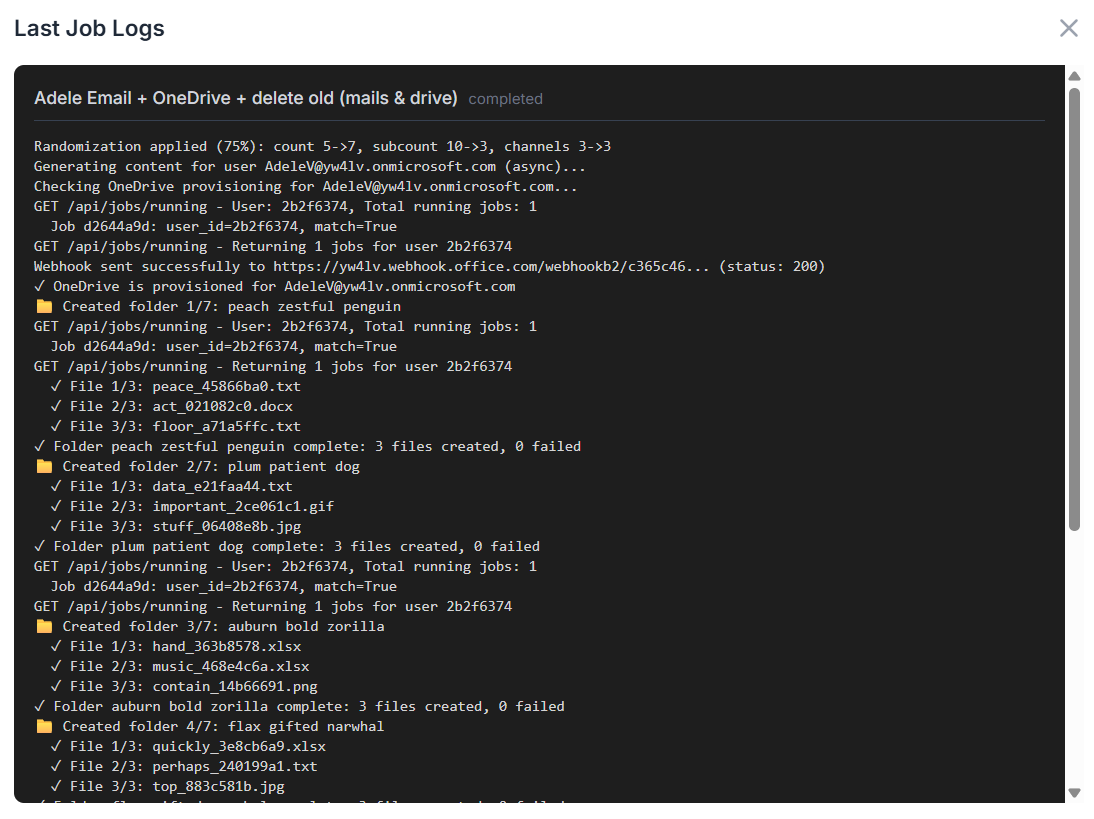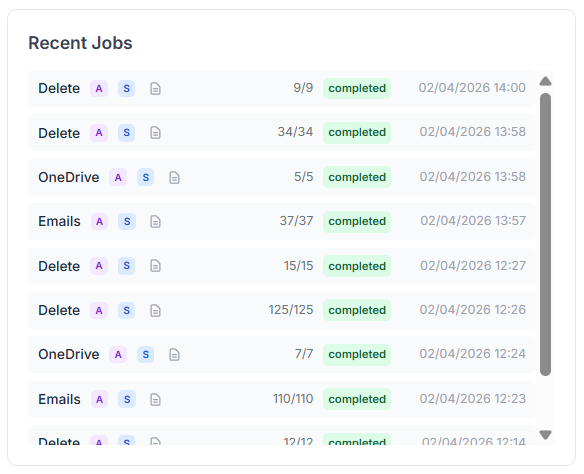 Here, every executed job is listed, whether it came from a manual run, a one-off task, or a full automation flow, scheduled or not.