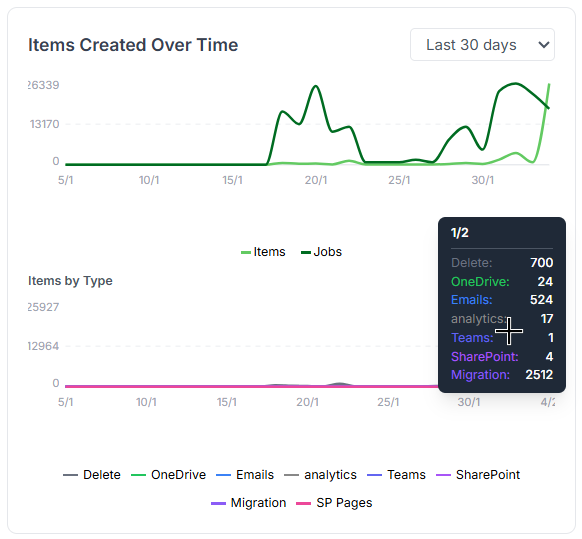 - A trend graph tracking how job executions and item creations evolve over time.