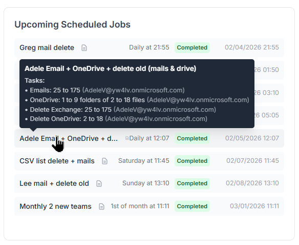 V4.0 introduces a powerful interactive Dashboard for M365 Generator. Track scheduled workflows, understand what runs when, and gain full visibility into your automations. More data, more control, and clearer insights to manage complex Microsoft 365 operations efficiently.