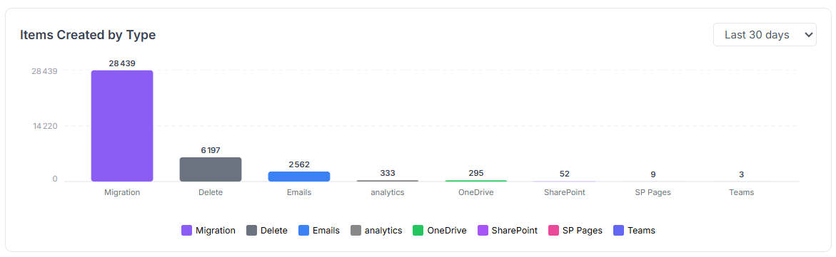 - A data type breakdown view showing the proportion of each item type created.